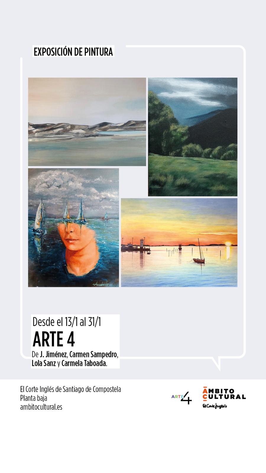 El pasado día 13 de enero inauguramos una nueva exposición de ARTE 4, esta vez en el Ámbito Cultural del Corte Inglés, en Santiago de Compostela.