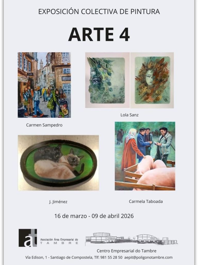 30 marzo, 2026 de Carmela Taboada Exposición Centro Empresarial do Tambre Hoy la prensa habla de nuestra nueva exposición de ARTE 4 en el Centro Empresarial do Tambre. Ver Se podrá visitar hasta el 9 de abril. ¡Os esperamos! Comparte en Facebook (Se abre en una ventana nueva) Facebook Haz clic en Pinterest (Se abre en una ventana nueva) Pinterest Me gusta Cargando... Relacionado